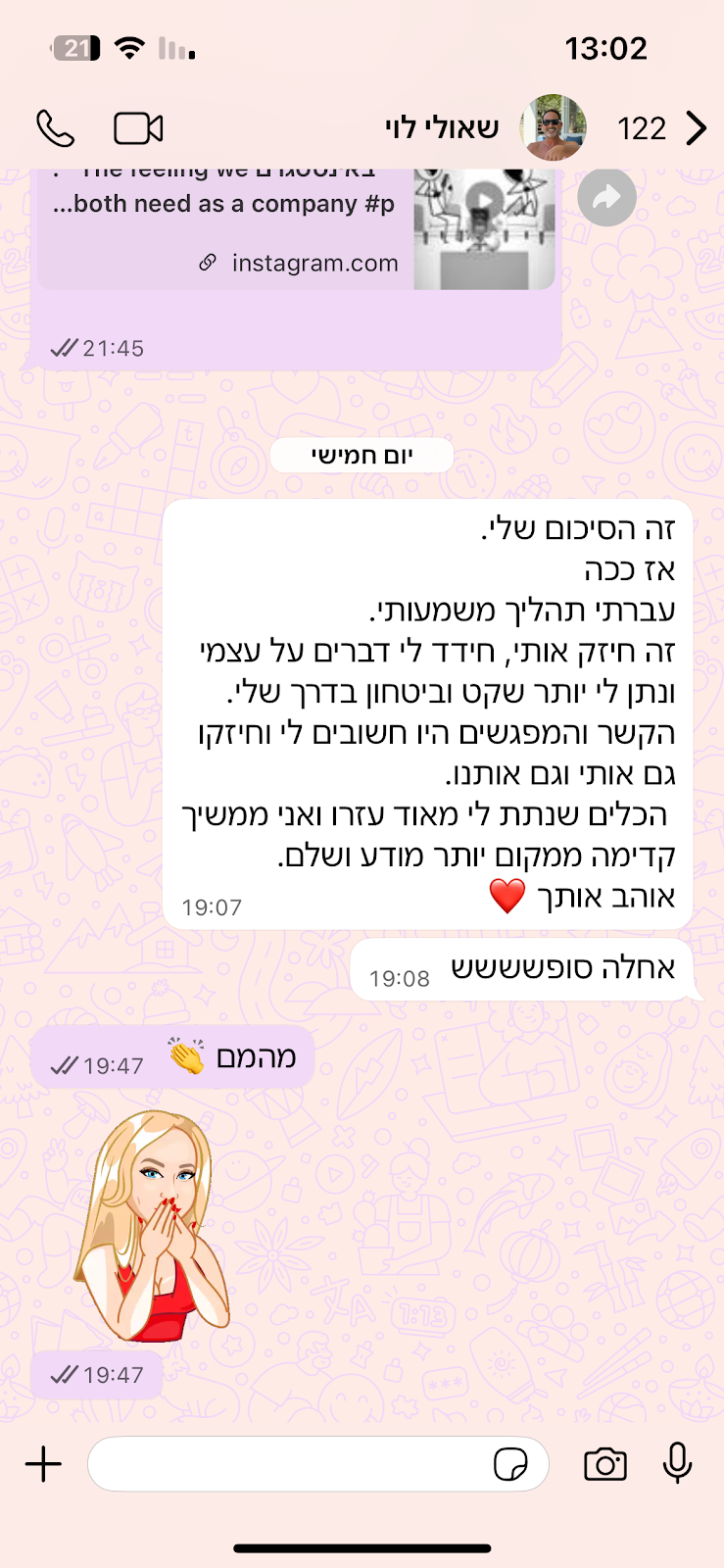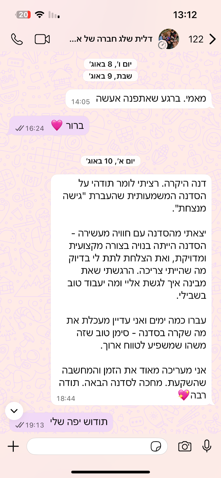אני Danosh – אמא לשני חיילים, ליאם לוחם בנח״ל ומאי מש״קית ת״ש. מאמנת אישית (Coach), מחנכת עם מעל 20 שנות ניסיון בליווי ילדים, בני נוער ומבוגרים, ומדריכה הורים לחיים של אחווה, שותפות ואהבה. זכיינית של אלון גל בחברת תות – תקשורת ותוצאות. בעבודתי אני משלבת ניסיון חינוכי עמוק עם כלים מעשיים מעולם האימון וטכניקות NLP, המסייעות לחיזוק ביטחון עצמי, שינוי דפוסי חשיבה ויצירת שקט פנימי. אני מלווה אנשים שמרגישים עייפות מהחיים, חוסר ביטחון או הצפה פנימית גם כאשר כלפי חוץ הכול נראה מתפקד. הגישה שלי אנושית, רגועה ולא שיפוטית. אני מאמינה שביטחון עצמי אינו נבנה מתוצאות או הישגים, אלא מהיכולת של אדם לסמוך על עצמו, לאהוב את עצמו ולהרגיש שקט מבפנים. בתהליכי האימון אני עוזרת לנקות רעשי רקע פנימיים, לחזק ערך עצמי ולהחזיר בהירות, כך שהבחירות בחיים נעשות ממקום רגוע, מדויק ונכון יותר.